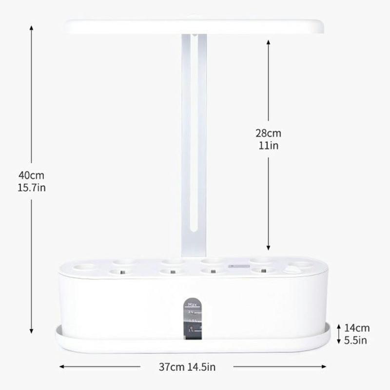 - Hydroponiskt system för inomhusbruk: Odla växter utan jord i den här smarta planteringen, som ger en kontinuerlig tillförsel av vatten, näringsämnen och syre till växtrötterna via en inbyggd vattenpump. Systemet fungerar automatiskt i 16 timmar per dag och ser till att dina växter alltid är väl omhändertagna.