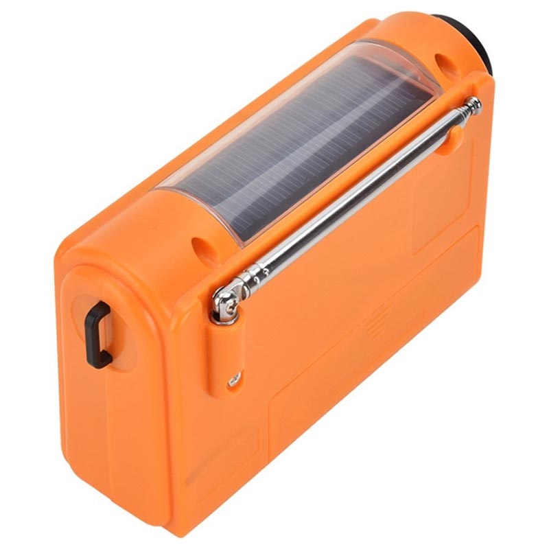 Bortsett från musik när du är ute och campar kommer denna modell även att ge dig en inbyggd ficklampa för enkel navigering nattetid och den kan även användas som en powerbank om din mobil eller surfplatta skulle få slut på batteri. Du kan även ladda upp radions batteri med hjälp av handveven på framsidan eller genom att ställa ut den i solen och låta solpanelen göra jobbet.