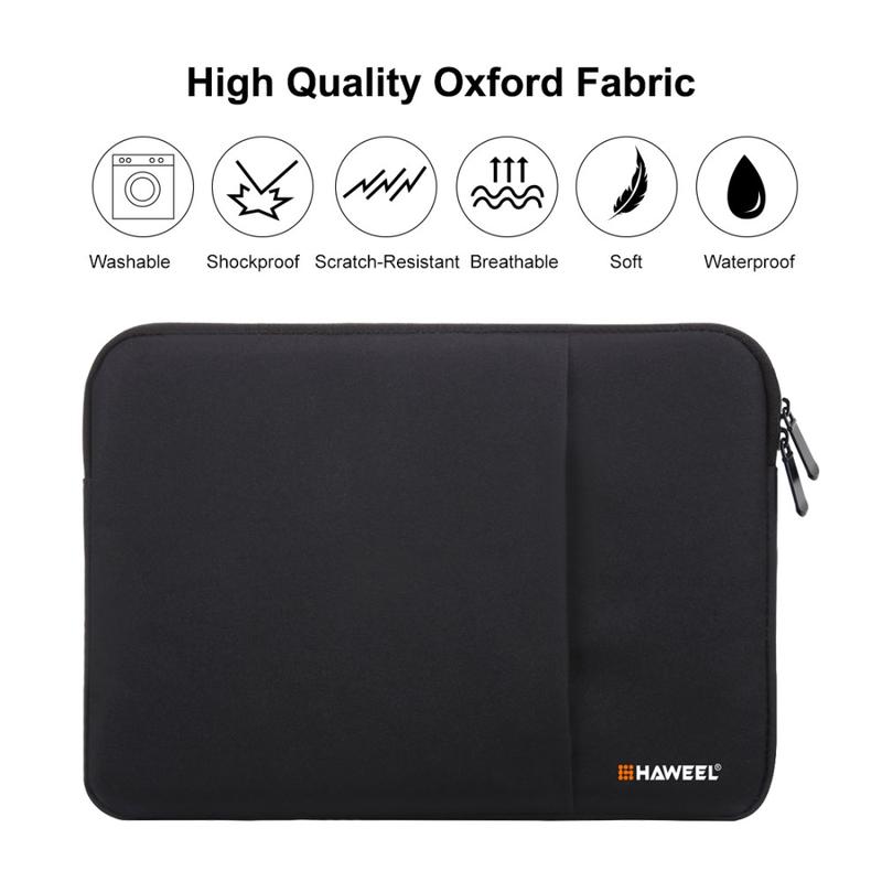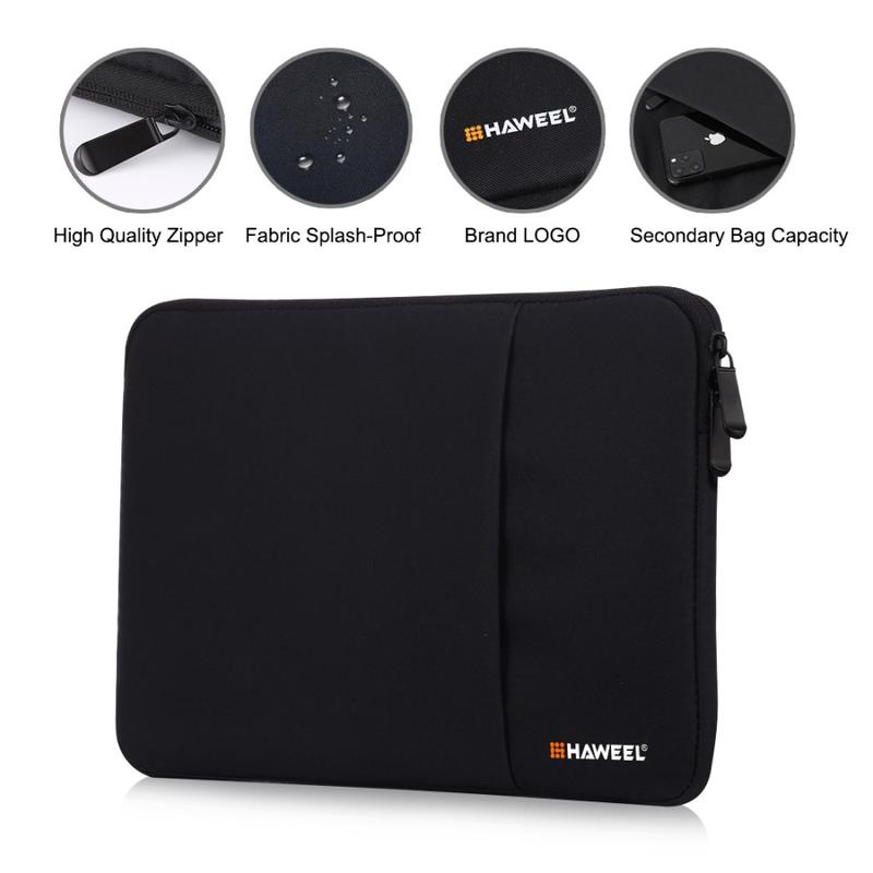 Detta HAWEEL-fodral för bärbar dator kombinerar praktiska egenskaper, hållbarhet och komfort i en elegant design. Dess trippelskiktsskydd skyddar mot vatten, stötar och repor, så att din enhet förblir säker när du är på språng. Den smala profilen ger ingen onödig bulk, medan den mjuka sammetsinredningen håller din bärbara dator i perfekt skick. Det är ett perfekt val för alla som behöver ett pålitligt och elegant vardagsskydd.