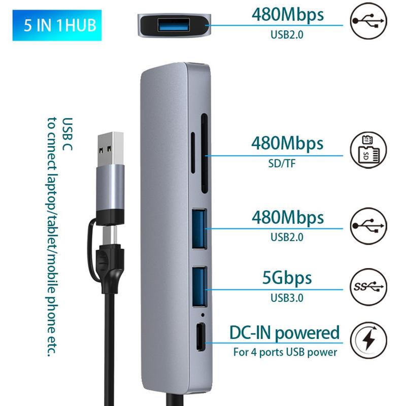 HC-13FL 2-i-1-hubben är en praktisk anslutningshubb som är utformad för att utöka antalet portar på din bärbara dator, surfplatta eller smartphone för enklare daglig användning. Med en flexibel 2-i-1-anslutningsdesign som stöder både USB-C och USB-A gör denna kompakta hubb det enkelt att ansluta fler tillbehör, överföra filer och arbeta mer effektivt mellan olika enheter.