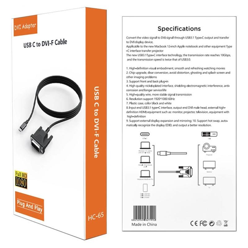 Anslut din USB-C-enhet till en DVI-skärm eller projektor med HC-65 USB-C till DVI-adapterkabel. Denna kabel är utformad för bärbara datorer, surfplattor och kompatibla smartphones och gör att du kan spegla eller utöka din skärm till större skärmar för presentationer, kontorsarbete och multimedievisning. Med stöd för 1080p Full HD-upplösning levererar den tydliga och stabila bilder som passar för daglig produktivitet och underhållning.
