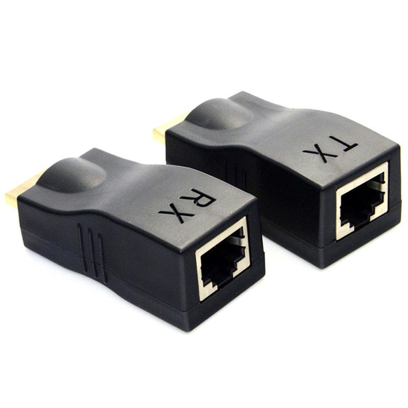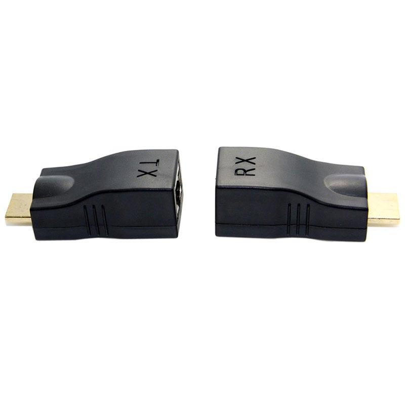 Dessa högkvalitativa HD-208 RJ45 till HDMI-förlängare ger dig möjligheten att förlänga HDMI-signaler upp till 30 meters med Cat5e eller Cat6-nätverkskablar. De levereras men en sändar- (TX) och en mottagarenhet (RX) med HDMI-hane till RJ45-hona grännssnitt. Anslut bara sändaren till den enhet som delar signalen, anslut mottagaren till den enhet som ska ta emot signalen och koppla den med din egen LAN-kabel.