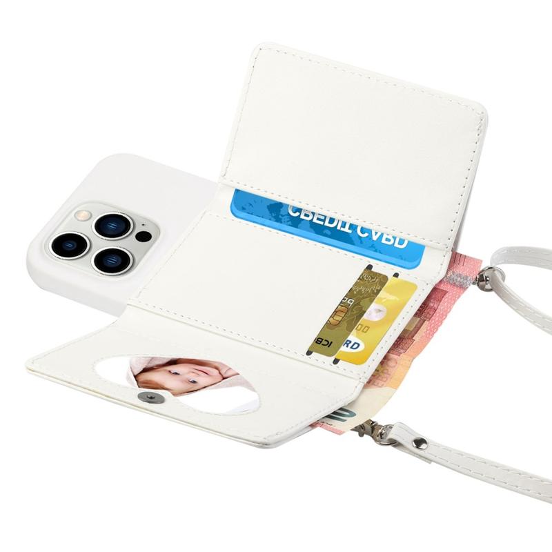 PU-läderplånbok TPU-skal för iPhone 14 Pro, Kickstand Reptåligt telefonskal med axelrem