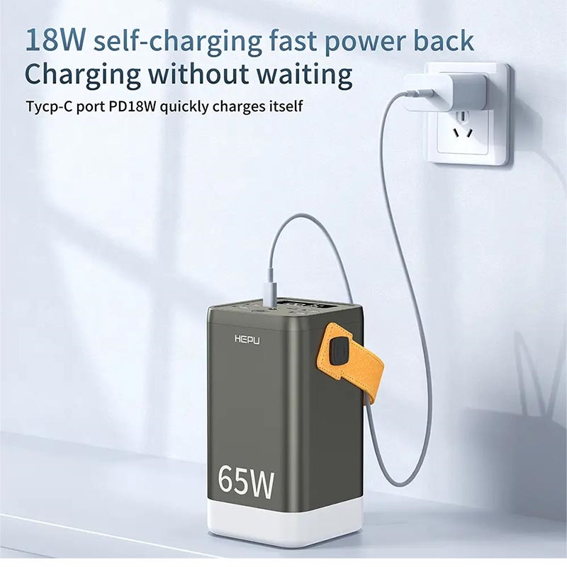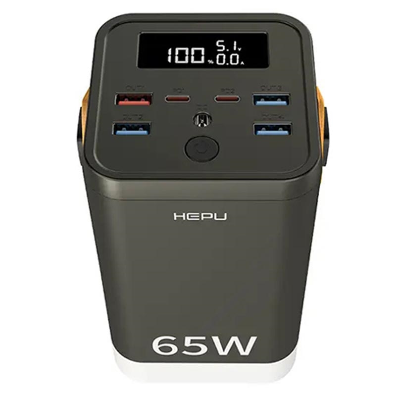 HEPU XXL HP211 är en massiv powerbank på 60000 mAh som är utformad för användare som behöver flera laddningsportar och långvarig kapacitet. Med fyra USB-A-portar, två USB-C PD-portar och en DC-port kan den driva flera enheter samtidigt, inklusive smartphones, surfplattor och mindre bärbara datorer. Även om den på pappret utlovar 65W snabbladdningsstöd, passar dess prestanda bäst för användare som prioriterar kapacitet framför hastighet.