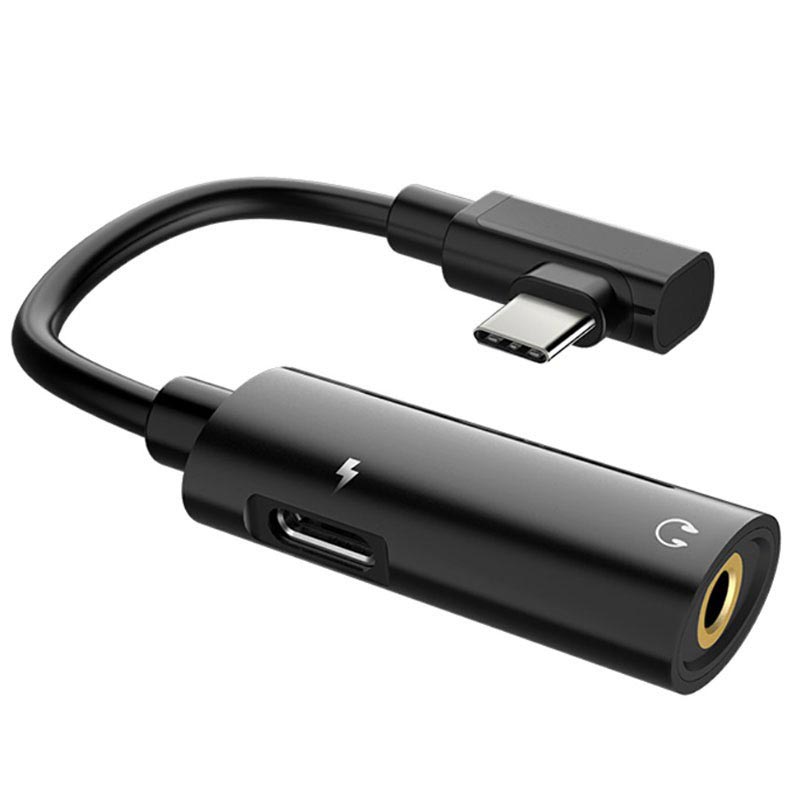 - 2-i-1 USB Typ-C han adapter med USB Typ-C hon och 3.5mm hon ljudportar