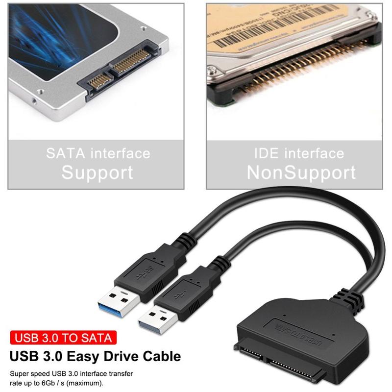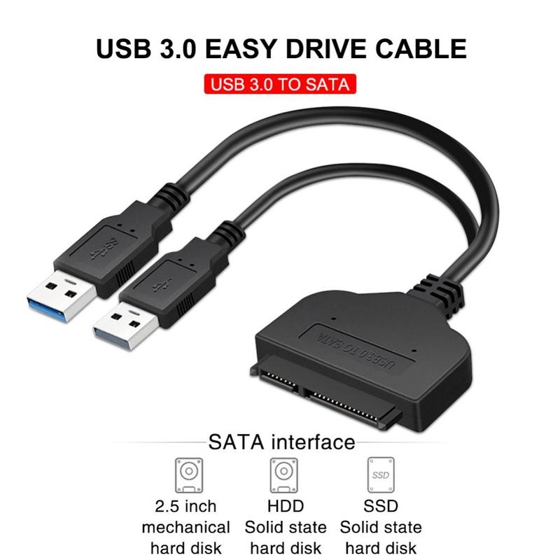 Höghastighets USB 3.0 till SATA-adapterkabel för 2.5" HDD och SSD - Plug-and-Play-omvandlare för extern hårddisk