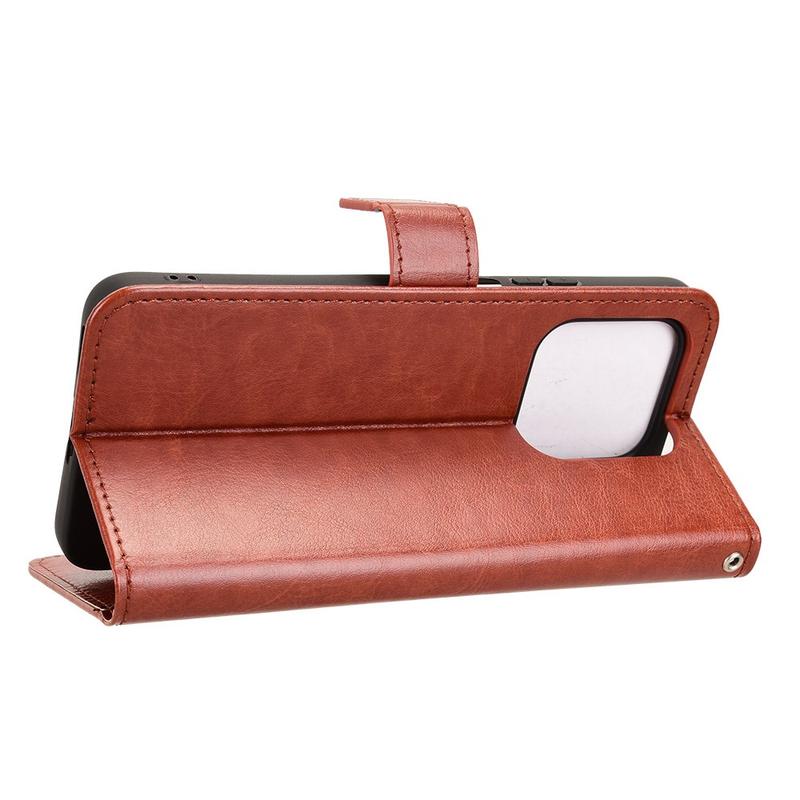 Namnet "Crazy Horse" kommer från traditionellt hästsadelmakeri; den strukturerade ytan behandlas med vaxer som skapar en tvåfärgad pull-up-effekt som efterliknar fullkornsläder samtidigt som det är djurvänligt, lättare och mer reptåligt. Det gör det idealiskt för telefontillbehör som används dagligen och där både hållbarhet och stil är viktiga.