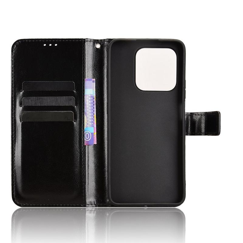 Namnet "Crazy Horse" kommer från traditionellt hästsadelmakeri; den strukturerade ytan behandlas med vaxer som skapar en tvåfärgad pull-up-effekt som efterliknar fullkornsläder samtidigt som det är djurvänligt, lättare och mer reptåligt. Det gör det idealiskt för telefontillbehör som används dagligen och där både hållbarhet och stil är viktiga.