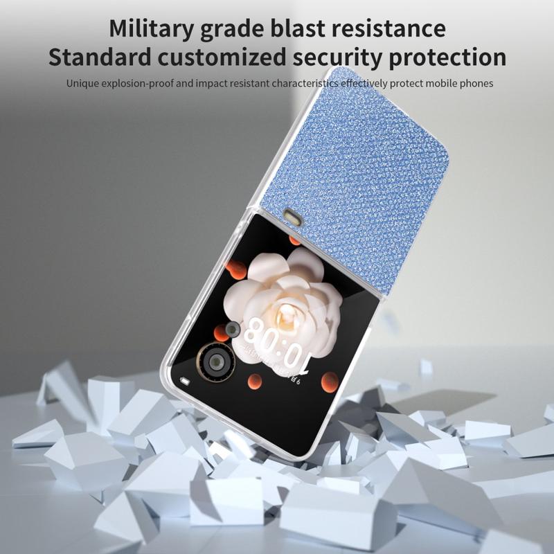 Skydda din Honor Magic V Flip 5G med detta premiumskal. Detta mobilskal kombinerar lyxig polyuretan med robust PC-material och är utformat för att erbjuda förstklassigt skydd och ett sofistikerat utseende. Det halkfria greppet säkerställer att din telefon hålls säkert i handen, vilket minskar risken för oavsiktliga fall samtidigt som den behåller ett snyggt, professionellt utseende.