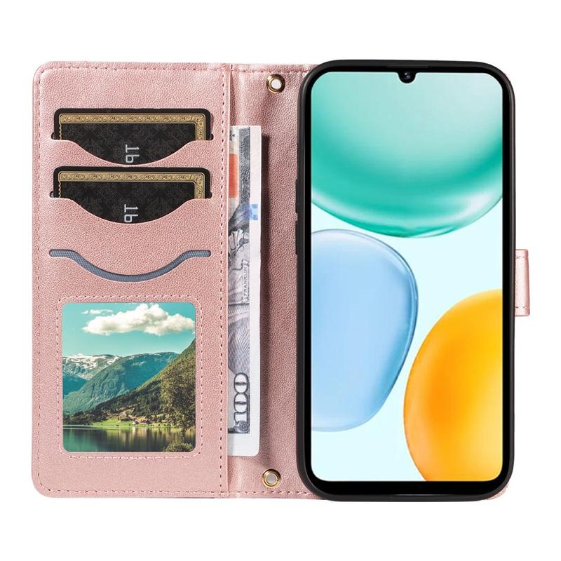 Lyxigt quiltat plånboksfodral med axel- och handledsrem för Honor X5c Plus - skyddande fodral med rombmönster