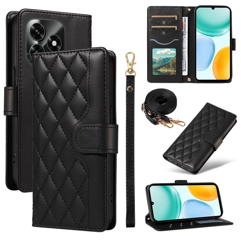 Lyxigt quiltat plånboksfodral med axel- och handledsrem för Honor X5c Plus - skyddande fodral med rombmönster