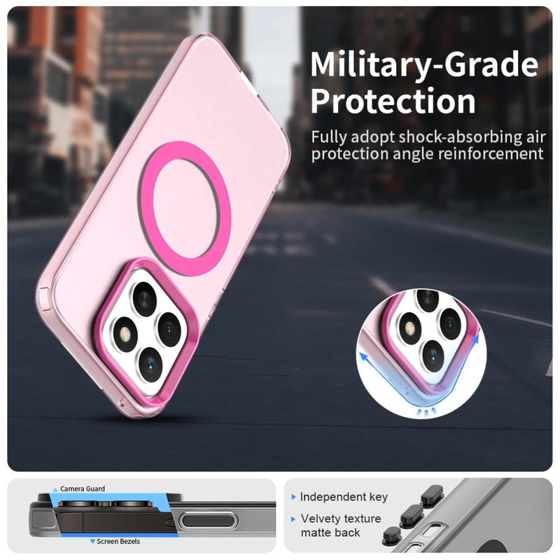 UltraGuard Matte MagSafe Case erbjuder en perfekt balans mellan skydd och elegant design för din Honor X8c. Det här tunna, lätta fodralet är tillverkat av en hållbar blandning av TPU- och PC-material. Dess matta genomskinliga finish ger din Honor X8c ett elegant utseende samtidigt som den ger enkel åtkomst till MagSafe-laddning. Med överlägset fall- och repskydd är det ett utmärkt val för daglig användning.