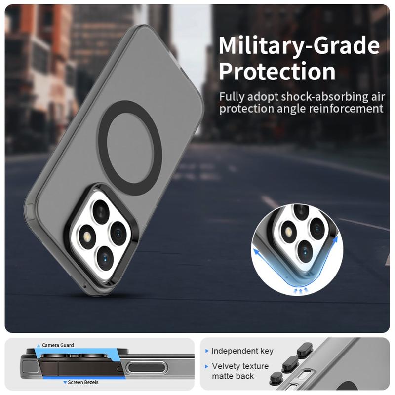 UltraGuard Matte MagSafe Case erbjuder en perfekt balans mellan skydd och elegant design för din Honor X8c. Det här tunna, lätta fodralet är tillverkat av en hållbar blandning av TPU- och PC-material. Dess matta genomskinliga finish ger din Honor X8c ett elegant utseende samtidigt som den ger enkel åtkomst till MagSafe-laddning. Med överlägset fall- och repskydd är det ett utmärkt val för daglig användning.