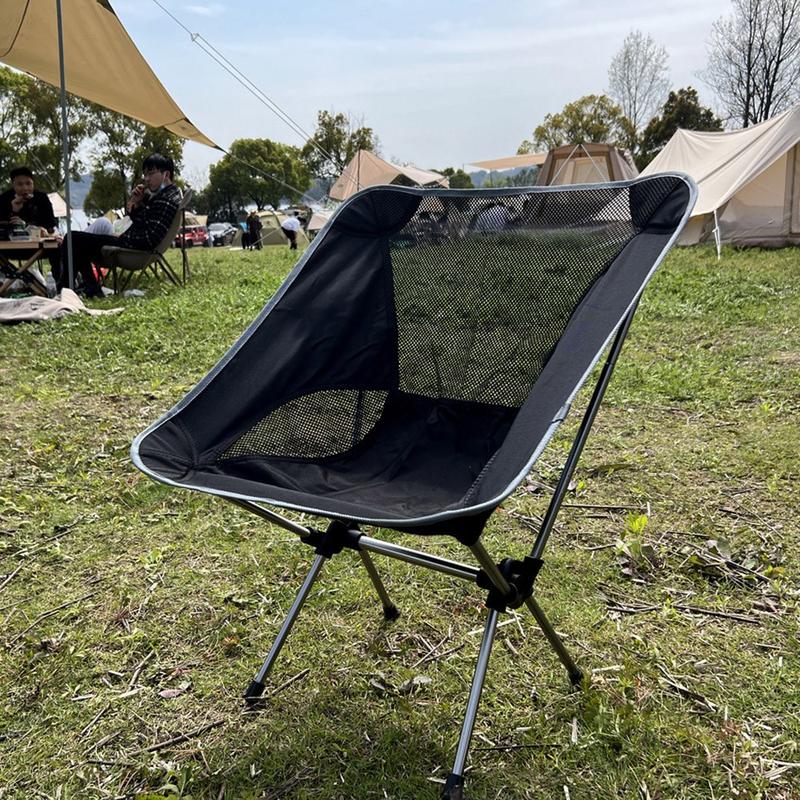 Stolens design ger en mer avslappnad sittställning, medan det konturerade sätet och ryggstödet hjälper till att stödja kroppen under längre perioder av sittande utomhus. Den cirka 45 graders lutningsvinkeln ger extra komfort, vilket gör den idealisk för att koppla av på campingen, vid sjön eller i trädgården. Ventilerande nätpaneler förbättrar också luftflödet, vilket kan göra det bekvämare att sitta i varmare väder.