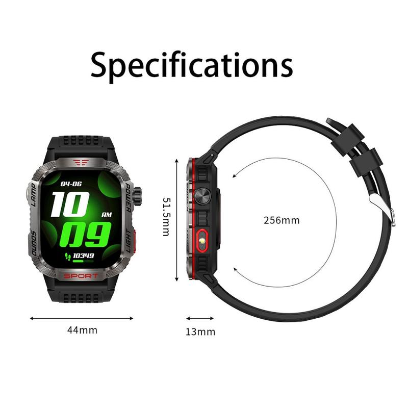 HT29 Smartklocka med 2,01" HD-skärm, kompass, höjdmätning, ficklampa och hälsoövervakning