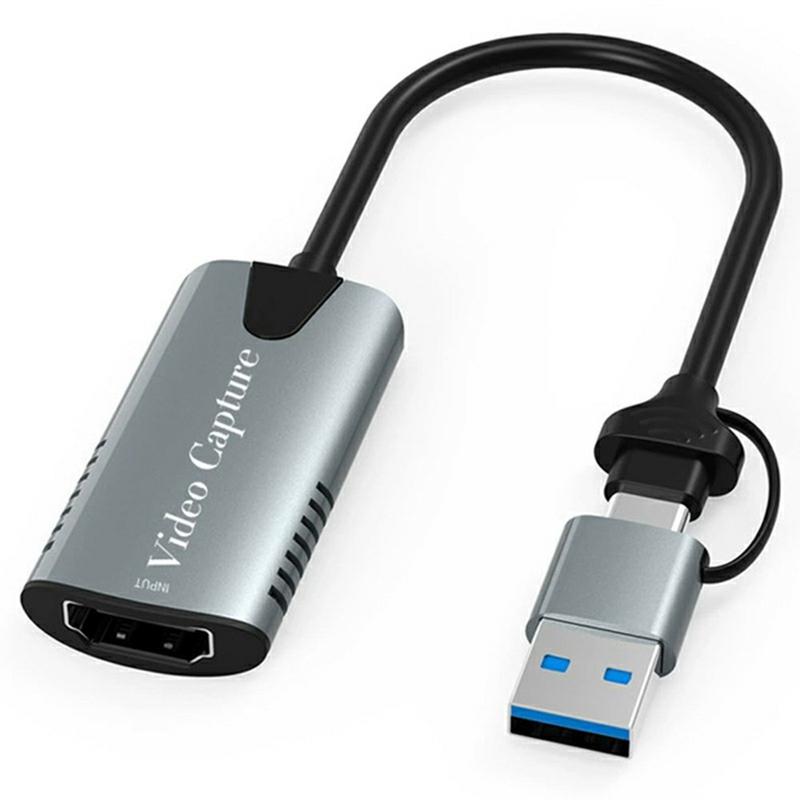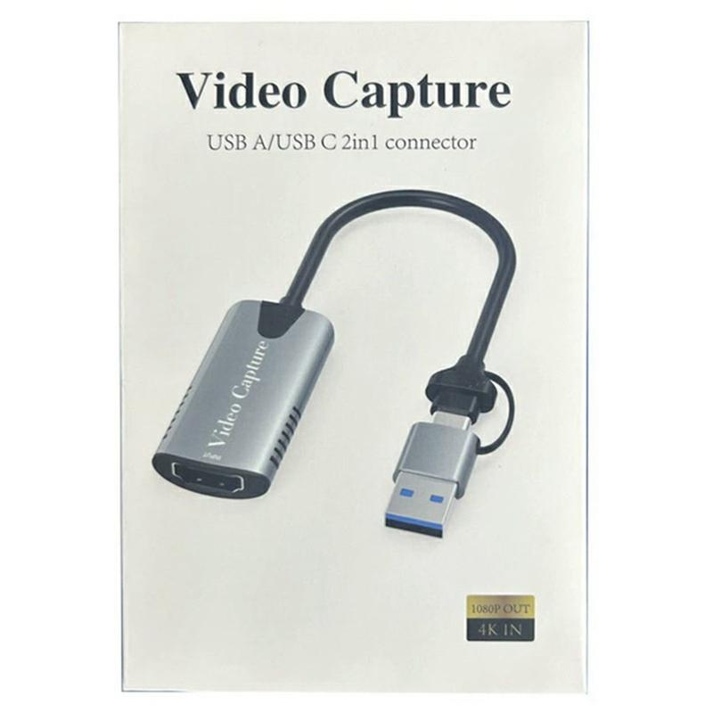 HU-04A 2-i-1 HDMI till USB-C/USB-A-videokort - adapter för streaming och inspelning i 1080p