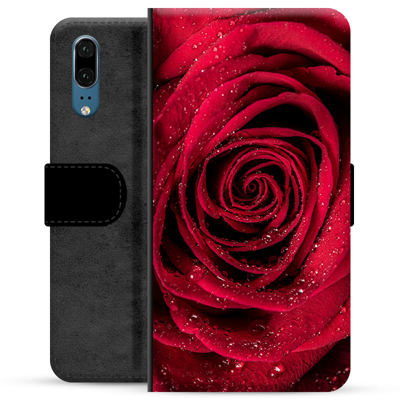 Detta Huawei P20 Premium Plånboksfodral är inte bara en skyddande mobilväska, utan även ett fashion statement. Fodralets design med den iögonfallande röda rosen är lika praktfull som den är funktionell. Plånboksdesignen innebär att du har slots för kreditkort eller visitkort, och ett större fack för sedlar eller kvitton, vilket gör att du har allt viktigt på ett ställe.