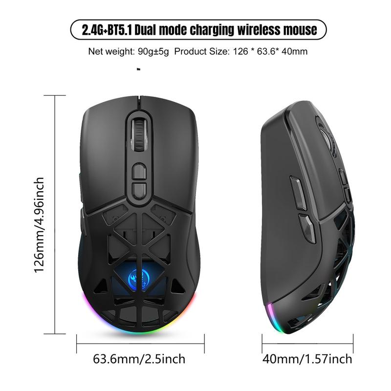 HXSJ T26 RGB-bakgrundsbelyst trådlös mus / Bluetooth-mus med justerbar DPI - 800-1200-2400-4800
