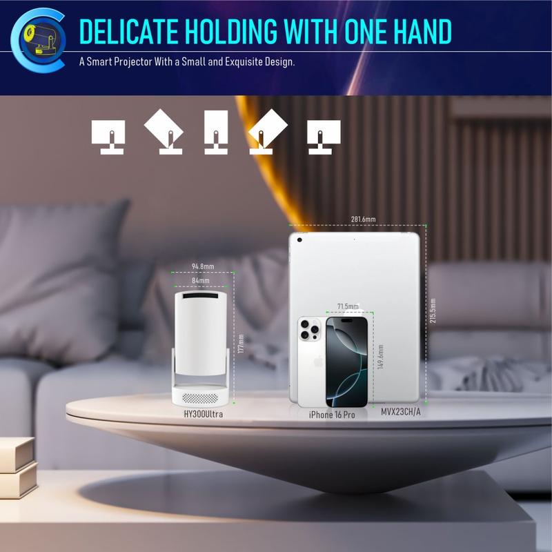 HY300Ultra kombinerar smart funktionalitet, bärbarhet och flexibel projicering i en och samma enhet. Med inbyggda Android-appar, modern trådlös anslutning och enkel bildjustering erbjuder den en allt-i-ett-lösning för alla som vill ha en enkel och mångsidig projektor utan extra hårdvara.