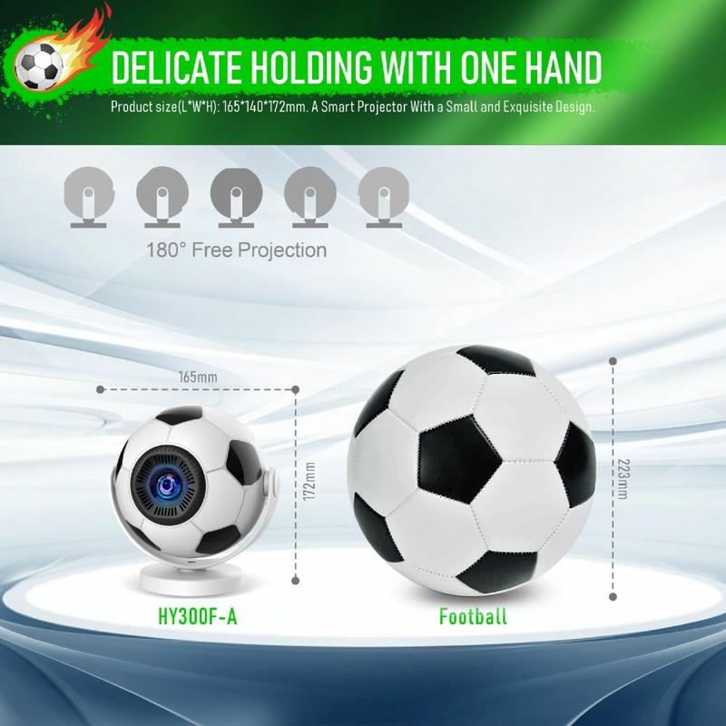 HY300F bärbar projektor i fotbollsform - WiFi 6, Android 14, 170 ANSI-lumen, 720p hemmabio-projektor - EU-kontakt