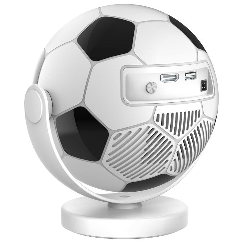 - Unik bärbar projektor i fotbollsform med kompakt kropp och stativ