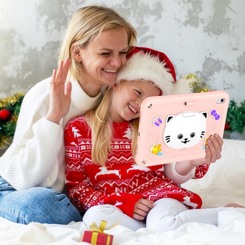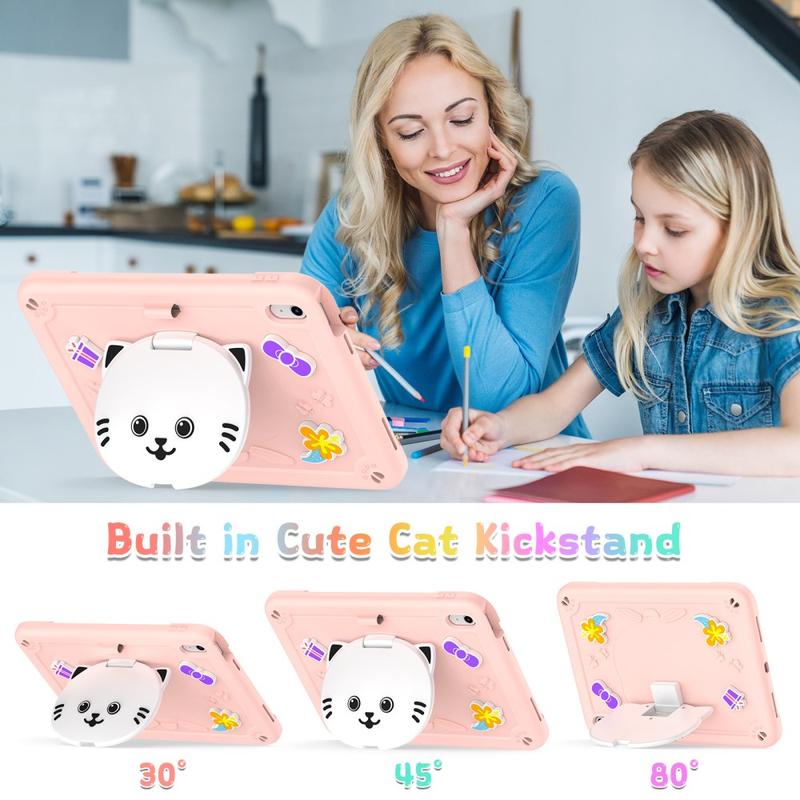 Söt katt-hybridfodral med kickstand, axelrem och pennhållare för iPad (2022), iPad (2025)