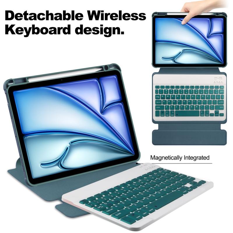 • 360-roterande smartfodral med magnetiskt Bluetooth-tangentbord för iPad Air 11 2024/2025 - QWERTY - US Layout