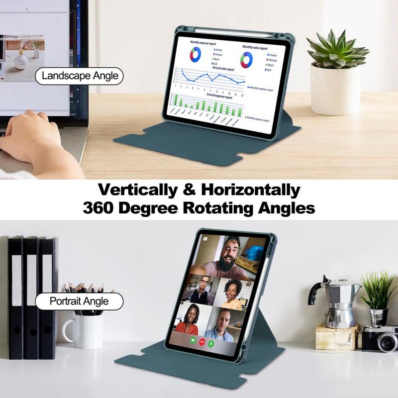 Roterande fodral för surfplattor blev populära i takt med att enheternas skärmar blev större och mer oumbärliga för vardagliga uppgifter. Den 360-gradiga vridningen ger ergonomiska fördelar och hjälper dig att uppnå den perfekta vinkeln för att titta och skriva. Dessutom minimerar denna design nackspänningar genom att låta dig placera skärmen i den mest bekväma höjden och riktningen, vilket förbättrar din totala upplevelse av surfplattan.