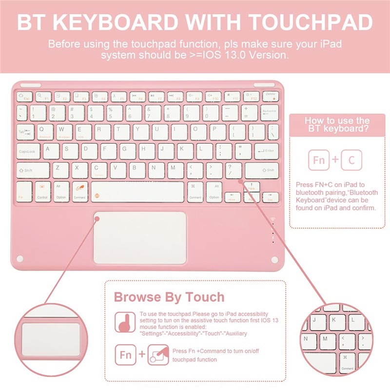 Förbättra din iPad Air 11 2026/2025/2024, iPad Air 2022/2020 med Bluetooth tangentbordsfodralet, ett multifunktionellt 2-i-1-tillbehör som kombinerar skydd, produktivitet och stil. Detta eleganta fodral är tillverkat av premiumpolyretan och ger fullt skydd mot repor, stötar och fingeravtryck samtidigt som det ger ett professionellt utseende. Bluetooth-tangentbordet ansluts trådlöst för smidig, responsiv skrivning, medan den integrerade pekplattan stöder multigeststyrning för enkel navigering. Med ett bakgrundsbelyst tangentbord kan du skriva bekvämt även i miljöer med svagt ljus. Det inbyggda justerbara stativet ger en ergonomisk betraktningsvinkel, vilket gör den perfekt för att skriva, streama eller läsa. Detta tangentbordsfodral är utformat för företag, resor eller vardagsbruk och förvandlar din surfplatta till en bärbar arbetsstation.