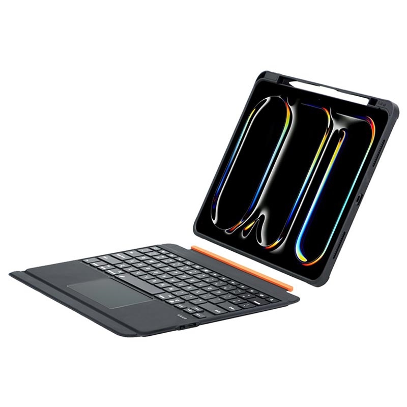Förvandla din iPad Air 13 2024/2025, iPad Pro 12.9 2018/2020/2021/2022 till en förstklassig arbetsstation med det magnetiska tangentbordsfodralet TU3609, som har ett fullt roterbart stativ, bakgrundsbelysta tangenter i färg och magnetiskt fäste. Det är perfekt för proffs och studenter och kombinerar funktionalitet, flexibilitet och modern stil i en elegant design.