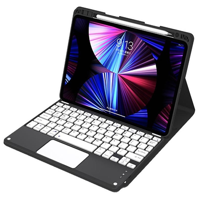 iPad Air 13 2026/2025/2024, iPad Pro 12.9 2022/2021/2020/2018 Bluetooth tangentbordsfodral med bakgrundsbelysning, pekplatta och stativ - US-tangentbordslayout