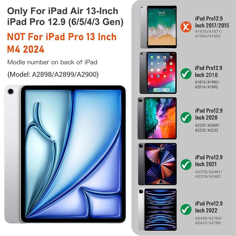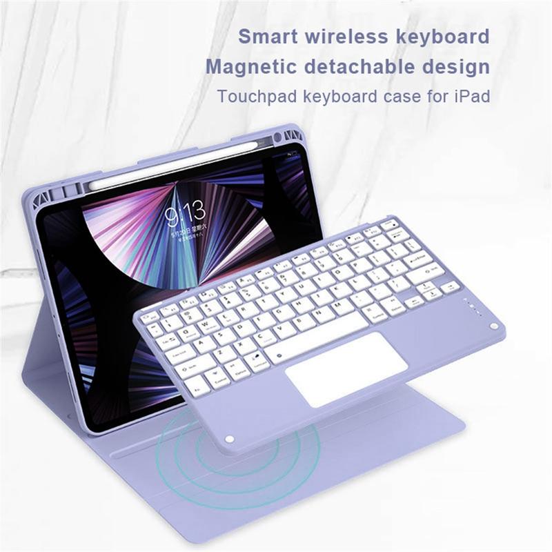 iPad Air 13 2026/2025/2024, iPad Pro 12.9 2022/2021/2020/2018 Bluetooth tangentbordsfodral med bakgrundsbelysning, pekplatta och stativ - US-tangentbordslayout