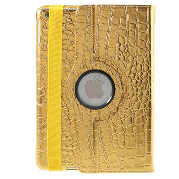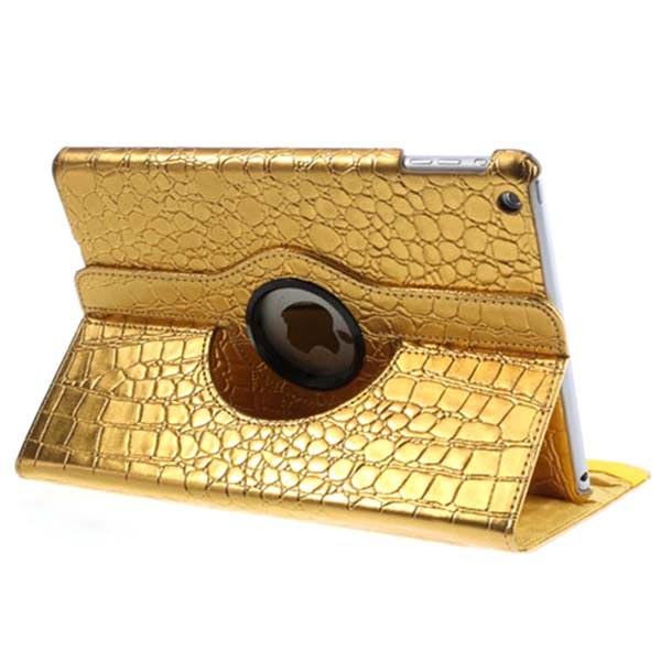 iPad Air Rotary Smart Läder Fodral - Crocodile - Guld