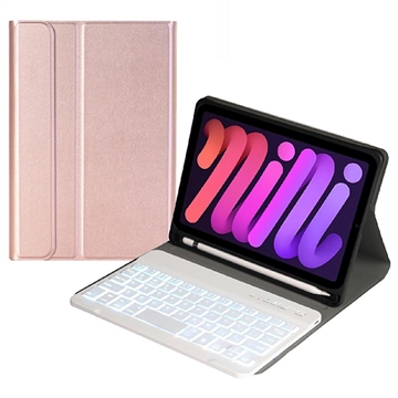 iPad Mini (2021), iPad Mini (2024) Bluetooth tangentbordsfodral med bakgrundsbelysning, pekplatta och stativ - US-tangentbordslayout