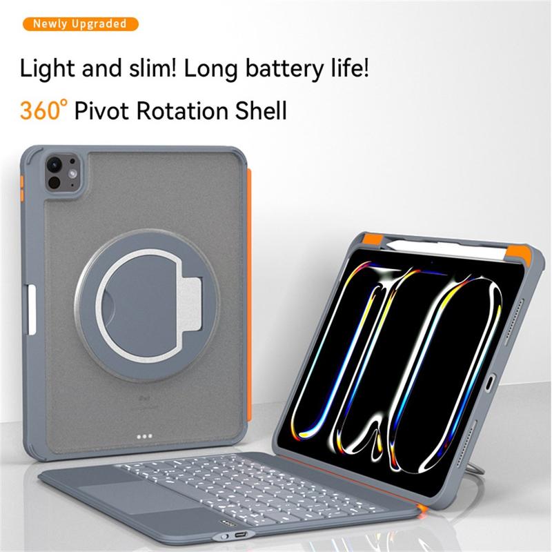 TU3607P Bakgrundsbelyst magnetiskt tangentbordsfodral med 360 graders roterande stativ för iPad Pro 11 (2024), iPad Pro 11 (2025) - Bluetooth 5.3 Avtagbart smart fodral