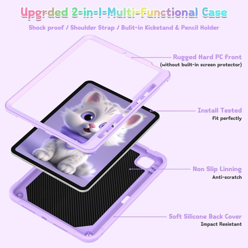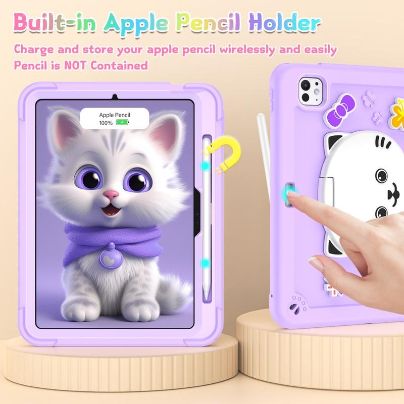 Söt katt-hybridfodral med kickstand, axelrem och pennhållare för iPad Pro 11 (2024), iPad Pro 11 (2025)