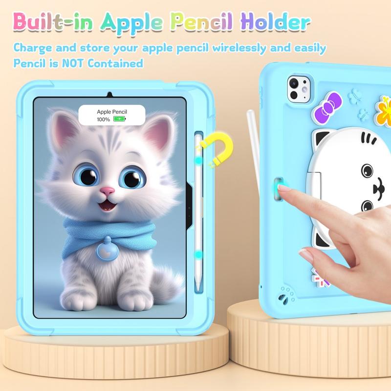Söt katt-hybridfodral med kickstand, axelrem och pennhållare för iPad Pro 11 (2024), iPad Pro 11 (2025)
