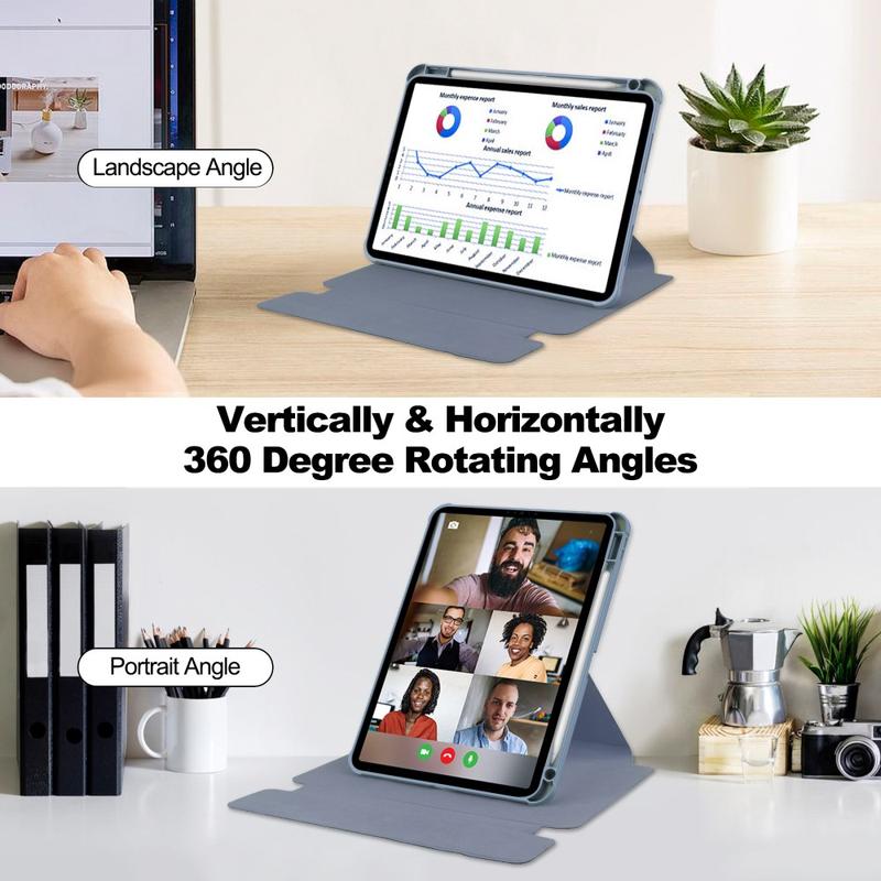Roterande fodral för surfplattor blev populära i takt med att enheternas skärmar blev större och mer oumbärliga för vardagliga uppgifter. Den 360-gradiga vridningen ger ergonomiska fördelar och hjälper dig att uppnå den perfekta vinkeln för att titta och skriva. Dessutom minimerar denna design nackspänningar genom att låta dig placera skärmen i den mest bekväma höjden och riktningen, vilket förbättrar din totala upplevelse av surfplattan.