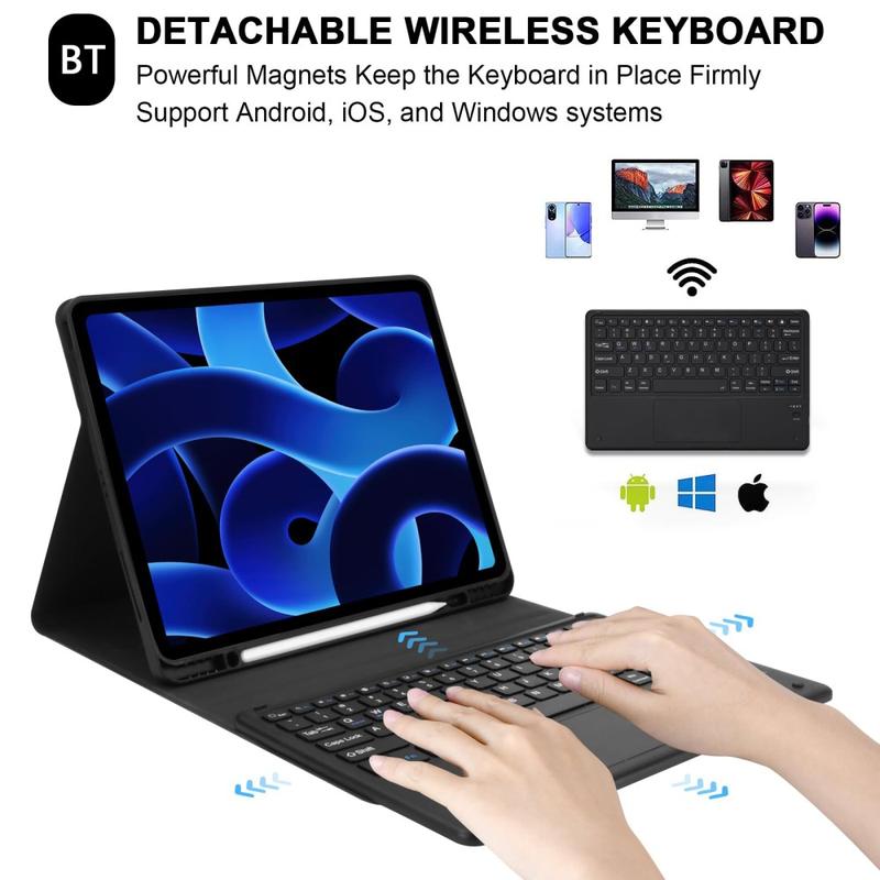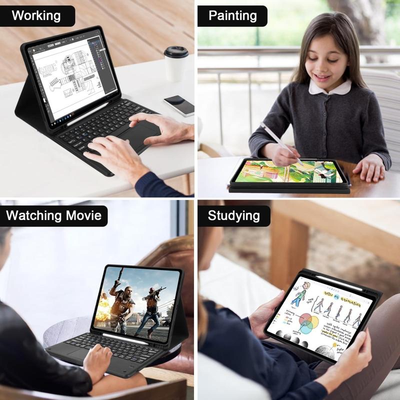 Detta Bluetooth tangentbord förvandlar din iPad Pro 12.9 2018/2020/2021/2022 till en bärbar laptop på ett par sekunder. Du kan använda Bluetooth tangentbord separat från fodralet. Ett perfekt val för att öka användarupplevelsen medan du håller din iPad Pro 12.9 2018/2020/2021/2022 i bästa skick utan skador.