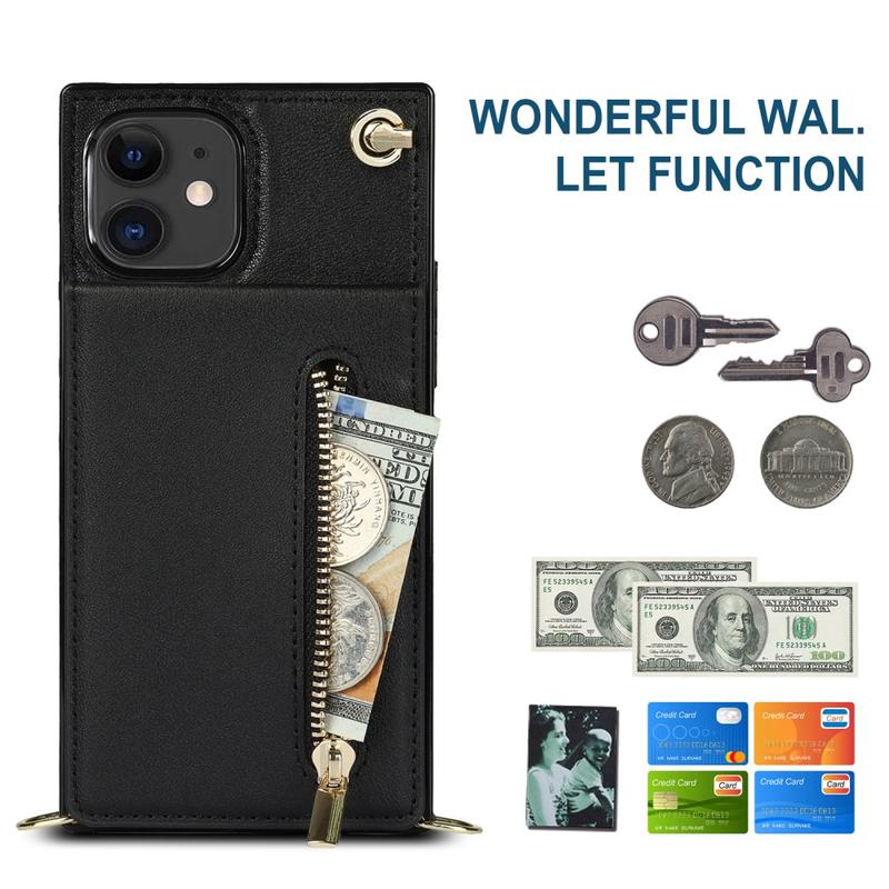 Hybridskal med plånbok och nyckelband för iPhone 11