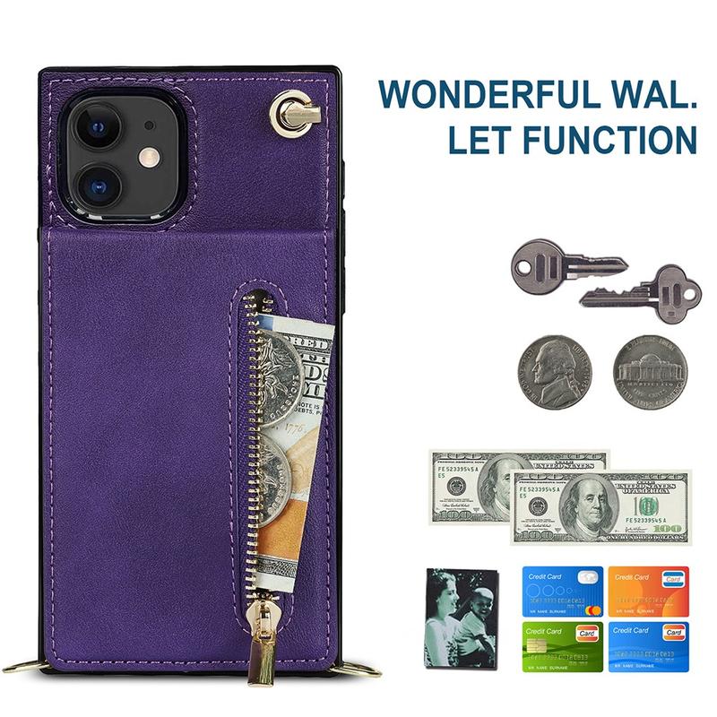 Hybridskal med plånbok och nyckelband för iPhone 11