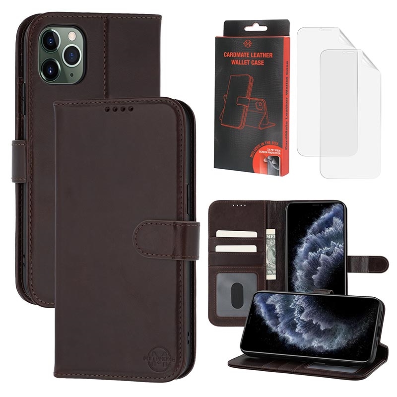 MyTPhone CardMate Premium läder plånboksfodral för iPhone 11 Pro Max - Stativ funktion, korthållare, stöd för trådlös laddning, 2x skärmskydd