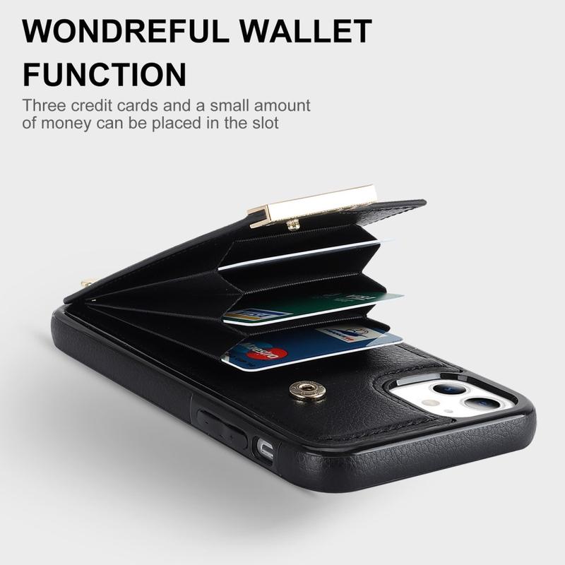 Detta TPU+PU läderfodral kombinerar stil, funktionalitet och skydd, vilket gör det till ett utmärkt val för iPhone 11-användare som söker en praktisk och elegant lösning. Den integrerade korthållaren och den stötsäkra designen ger bekvämlighet och sinnesfrid, vilket säkerställer att din enhet och dina viktigaste saker är väl skyddade.