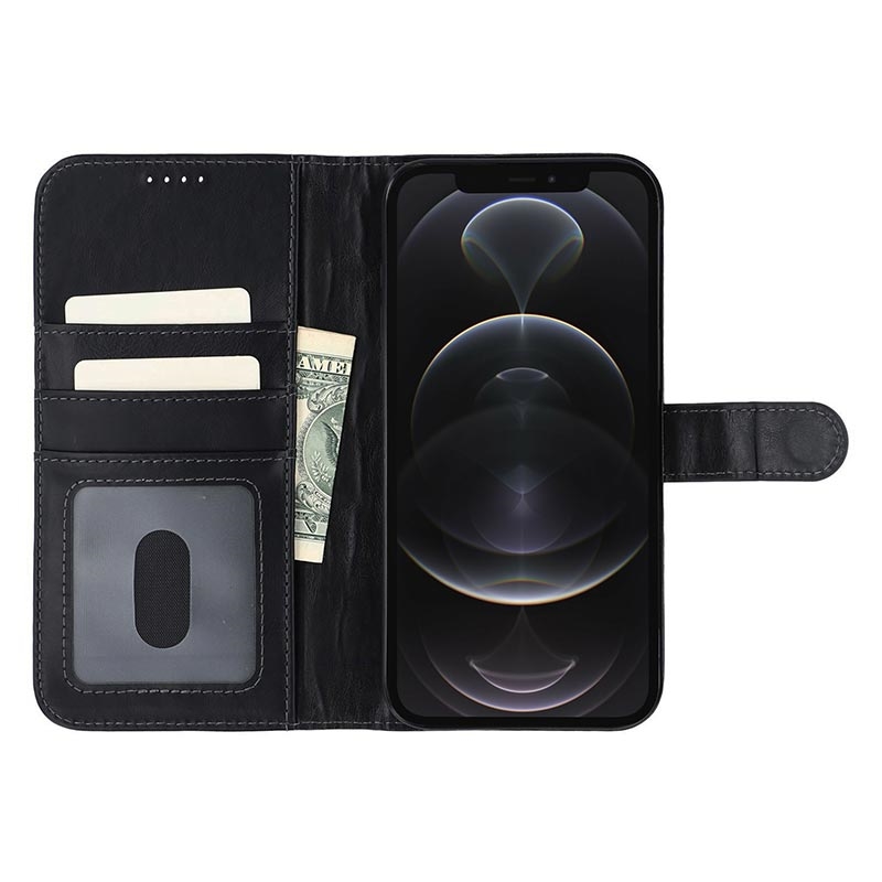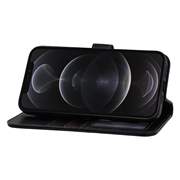 • MyTPhone CardMate Premium läder plånboksfodral för iPhone 12, iPhone 12 Pro - Stativ funktion, korthållare, stöd för trådlös laddning, 2x skärmskydd