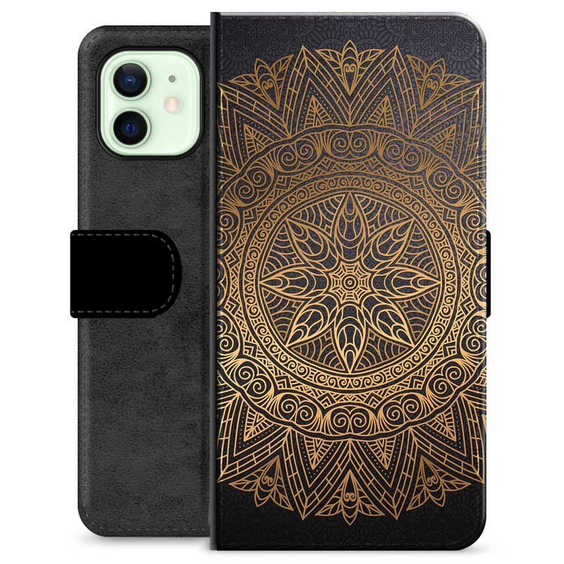 Det här är ett premium plånboksfodral för iPhone 12, som inte bara skyddar din smartphone mot repor och stötar men också tillhandahåller en elegant design med en detaljerad mandala. Fodralet är tillverkat av högkvalitativt material som simulerar skinn och