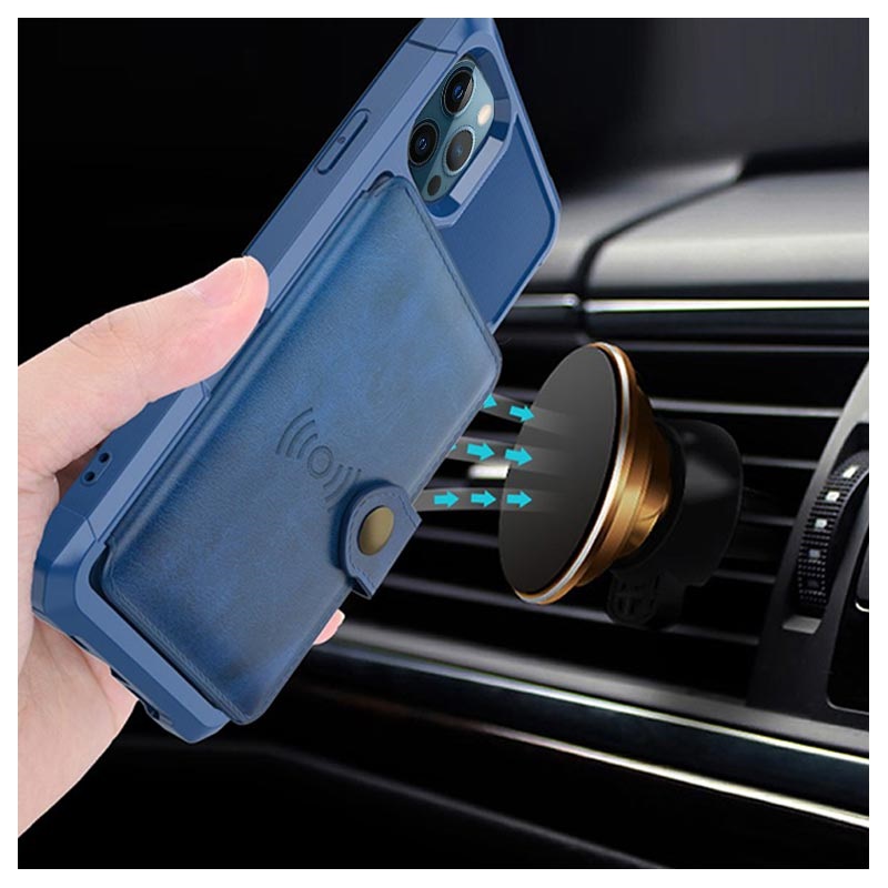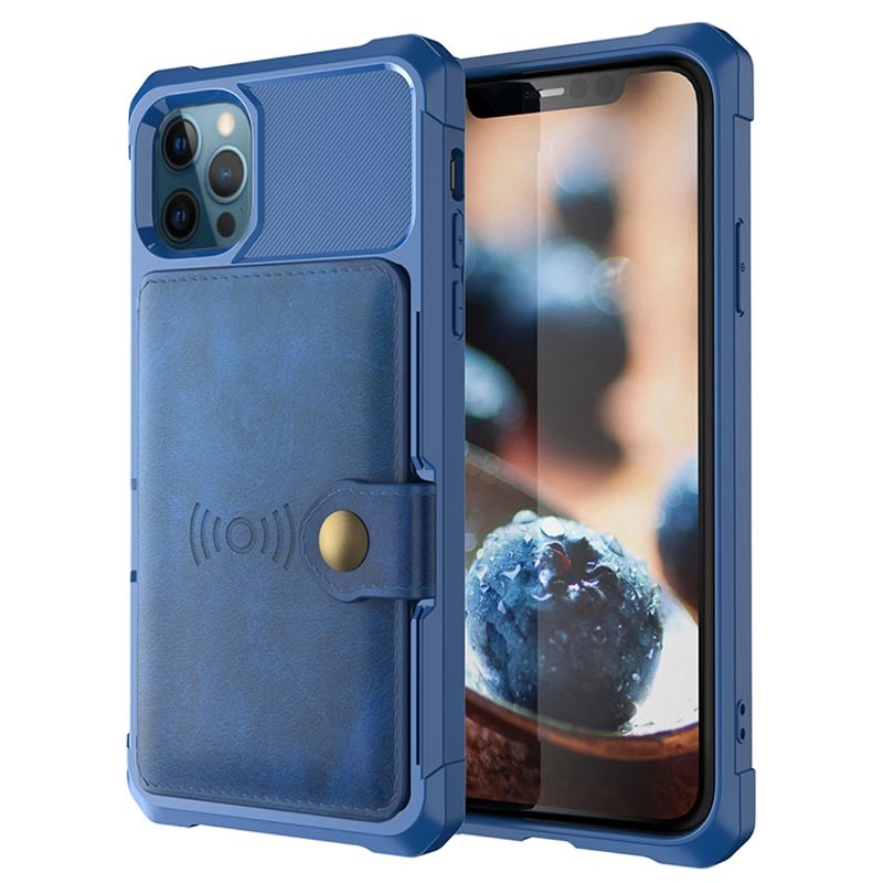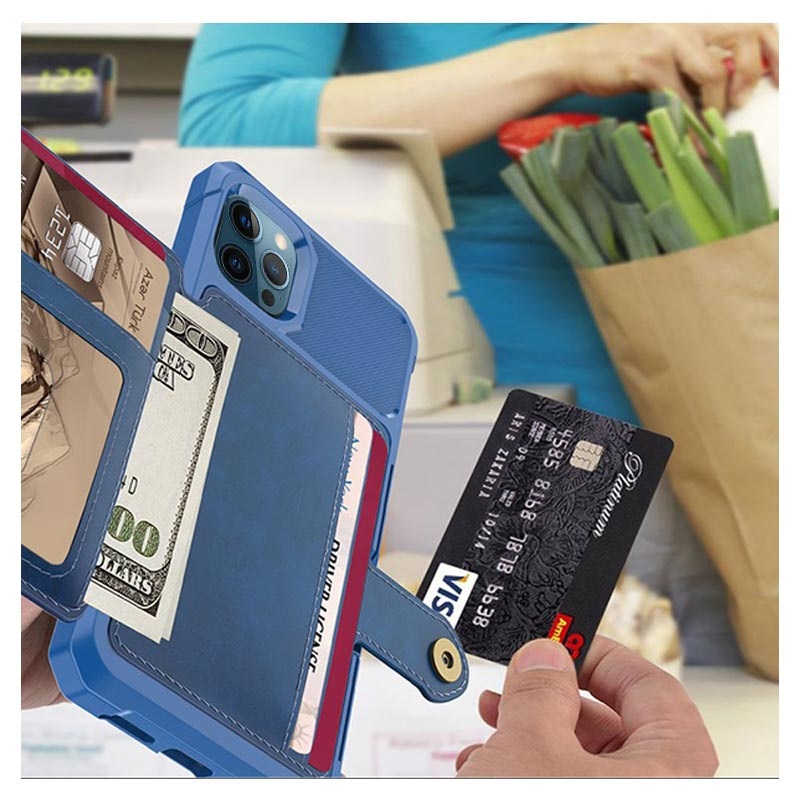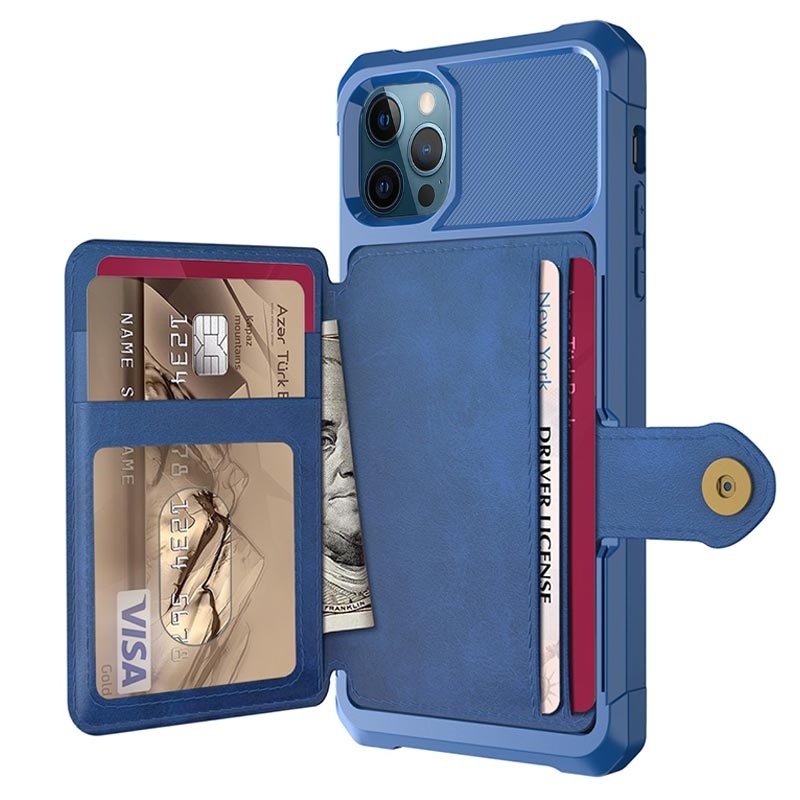 - Detta plånboksfodral för iPhone 12 Pro Max har en säker knappstängning, plånboksdesign och flera kortfickor, samt plats för kontanter