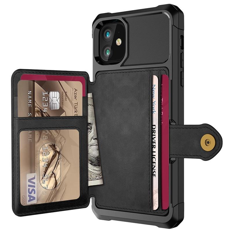 - Detta plånboksfodral för iPhone 12, iPhone 12 Pro har en säker knappstängning, plånboksdesign och flera kortfickor, samt plats för kontanter