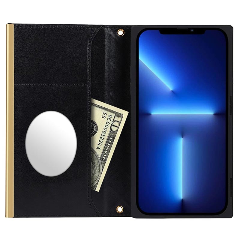 iPhone 13 Plånboksfodral med Sminkspegel - Svart