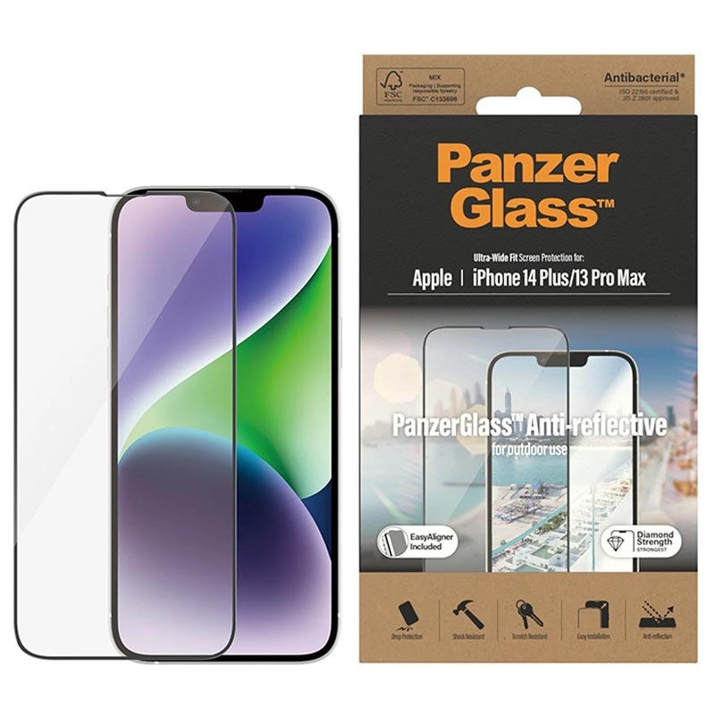 PanzerGlass Ultra-Wide Fit Anti-Reflective EasyAligner AntiBacterial Härdat Glas Skärmskydd till iPhone 13 Pro Max, iPhone 14 Plus