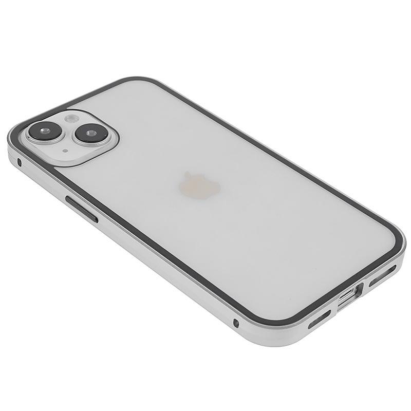 - iPhone 14 skal med metallram och härdat glas för både fram och baksidan